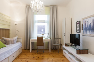 Сдаётся 1-комнатная квартира в Берлине (Berlin-Bezirk Pankow, 10409 Berlin) Prenzlauer Berg. Уютная квартира, полностью меблирована и оснащена всем необходимым для проживания. Условия: Цена: 1300 / месяц (всё включено: электричество, коммунальные, мебель, техника). Подходит максимум для 3 человек. Прописка возможна. Особенности: - Без маклера - Без провизии - Без кауциона (депозита) Не работаем с Sozialamt / Jobcenter / WBS.